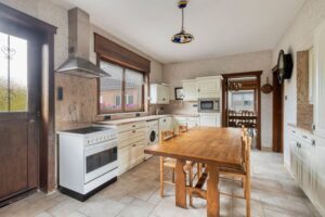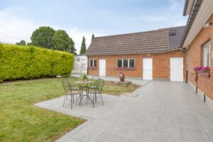 Te Okegem (Ninove) vinden we deze open bebouwing op een riant perceel grond van 3387m². Alle voorzieningen zoals scholen, winkels, ontspanning, openbaar vervoer en dorpskern bevinden zich in de directe omgeving. De woning is gelegen in een groene en rustige woonwijk. Daarnaast geniet deze woning van een goede bereikbaarheid door de nabijheid van diverse invalswegen. Naar indeling toe bevindt zich op het gelijkvloers een inkomhal, leefruimte, woonkamer/ bureel, keuken en toilet. Op de eerste verdieping hebben we een hal, 4 slaapkamers en badkamer. Zolder te bereiken via uitschuifbare ladder. Ondergrondse kelder met stooklokaal en bergruimte. Aparte garage met tuinberging.