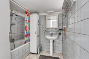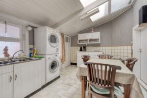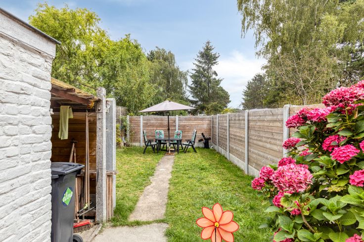 Eerste verdieping (42m²) met 3 slaapkamers en traphal. Tweede verdieping (21m²) met 1 slaapkamer en zolder. Zonnige en gezellige tuin.